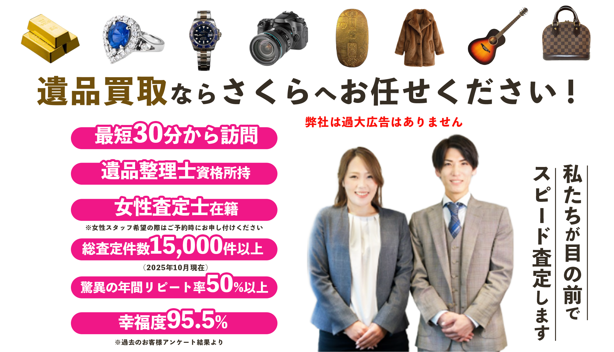 より安心してお客様にご利用頂けるように、さくらでは出張買取をさせて頂いたお客様に限り、