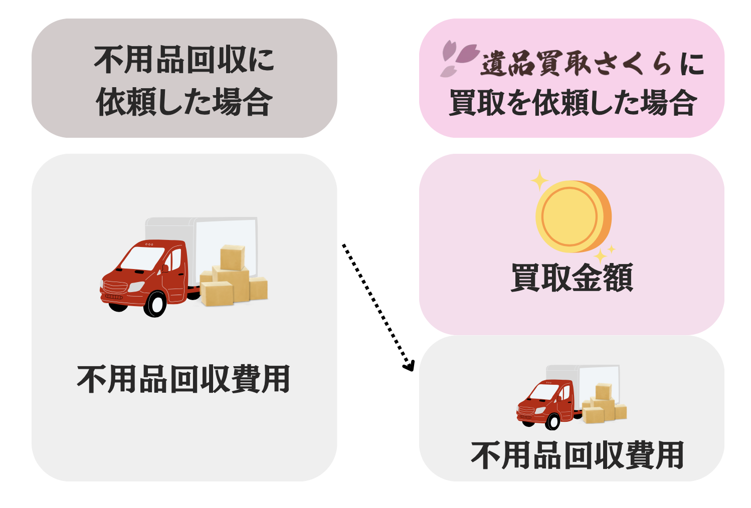 買取金額を不用品回収費用に充当できるので、実際にかかる金額を